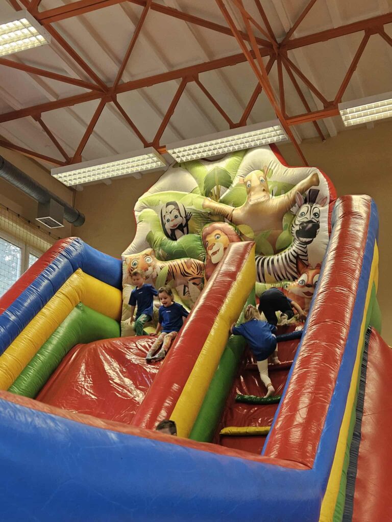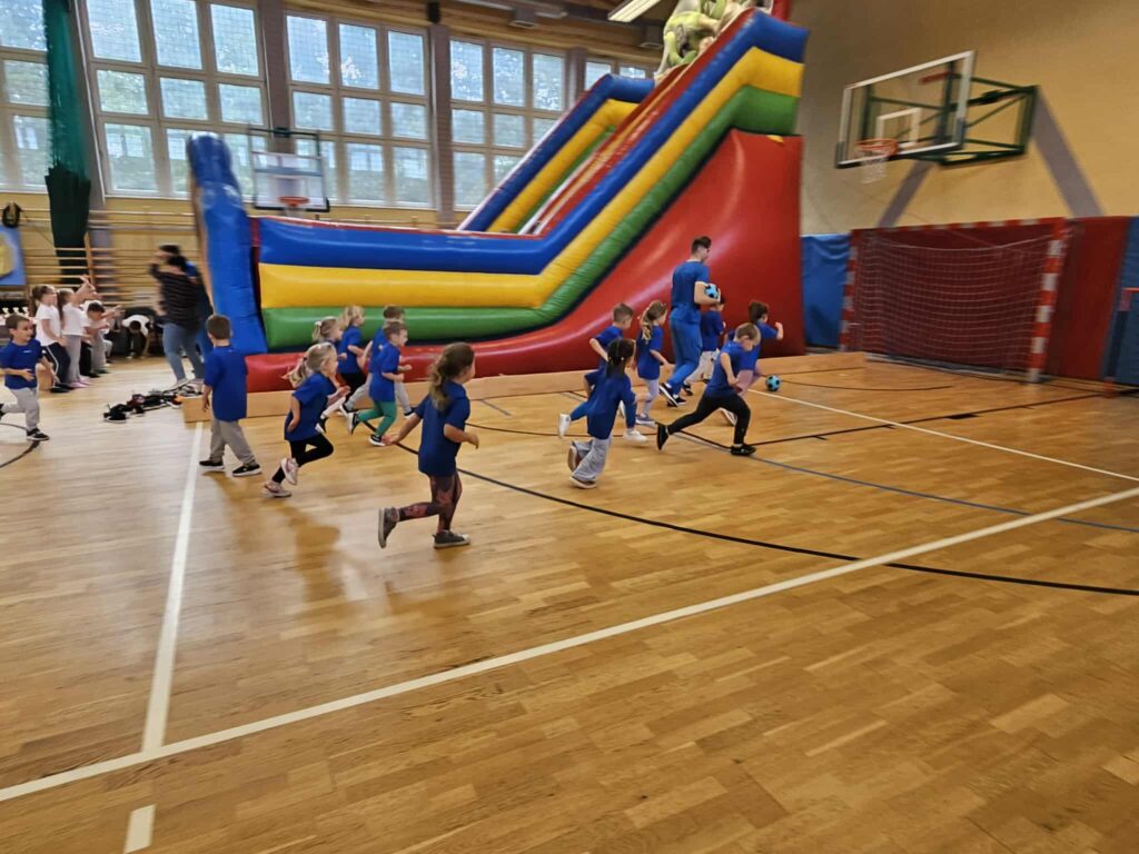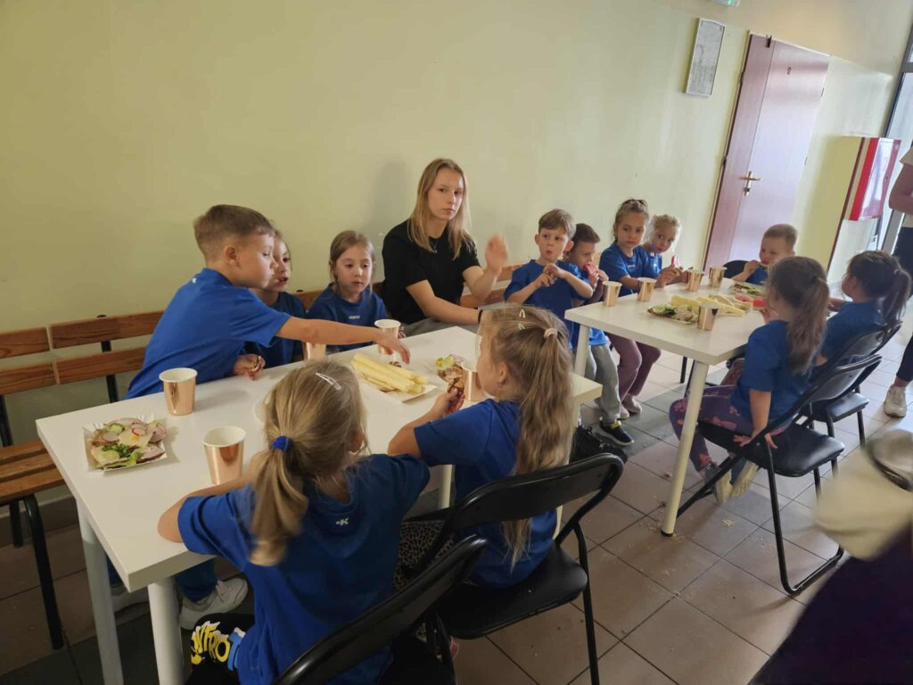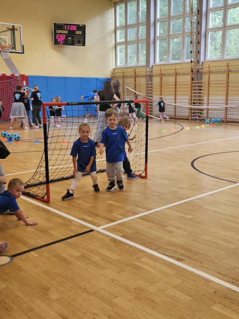 Dzieci wzięły udział w różnorodnych konkurencjach sportowych: gra w piłkę nożną, rzut do kosza, zabawy na dmuchanym zamku, wspólne zabawy plastyczne. W czasie przerwy mogły posilić się owocami i zdrowymi przekąskami.