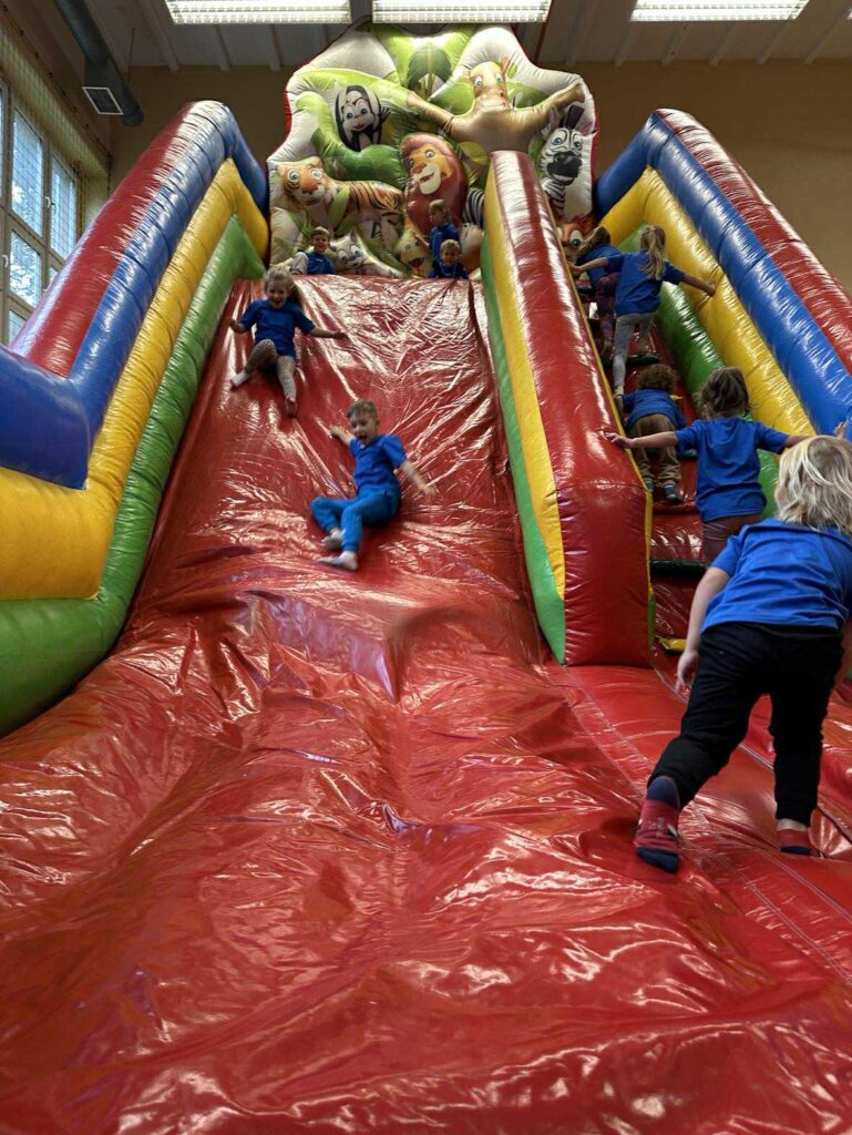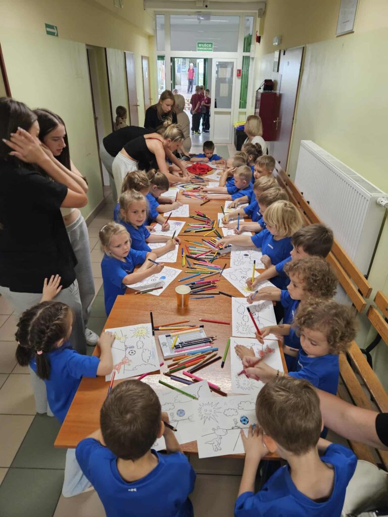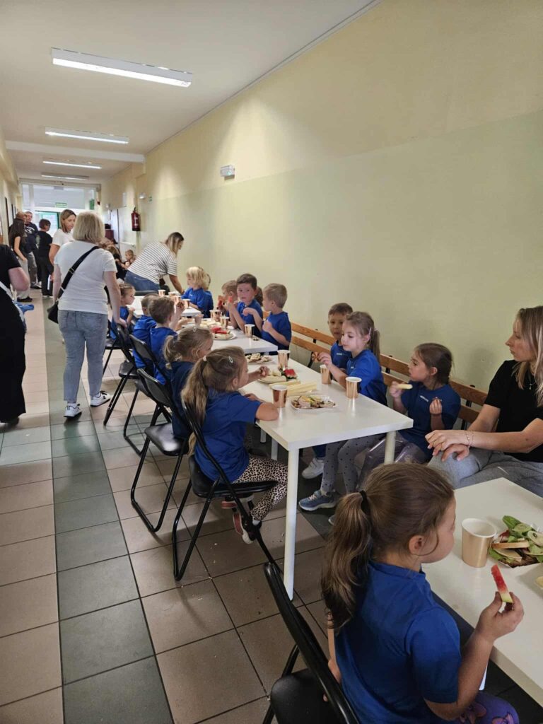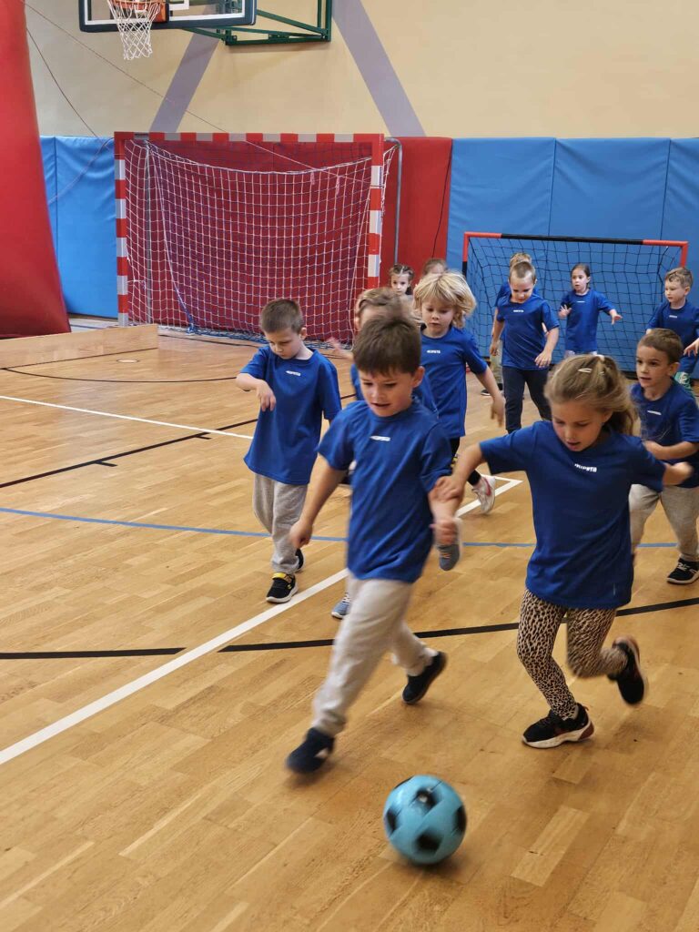 Dzieci wzięły udział w różnorodnych konkurencjach sportowych: gra w piłkę nożną, rzut do kosza, zabawy na dmuchanym zamku, wspólne zabawy plastyczne. W czasie przerwy mogły posilić się owocami i zdrowymi przekąskami.
