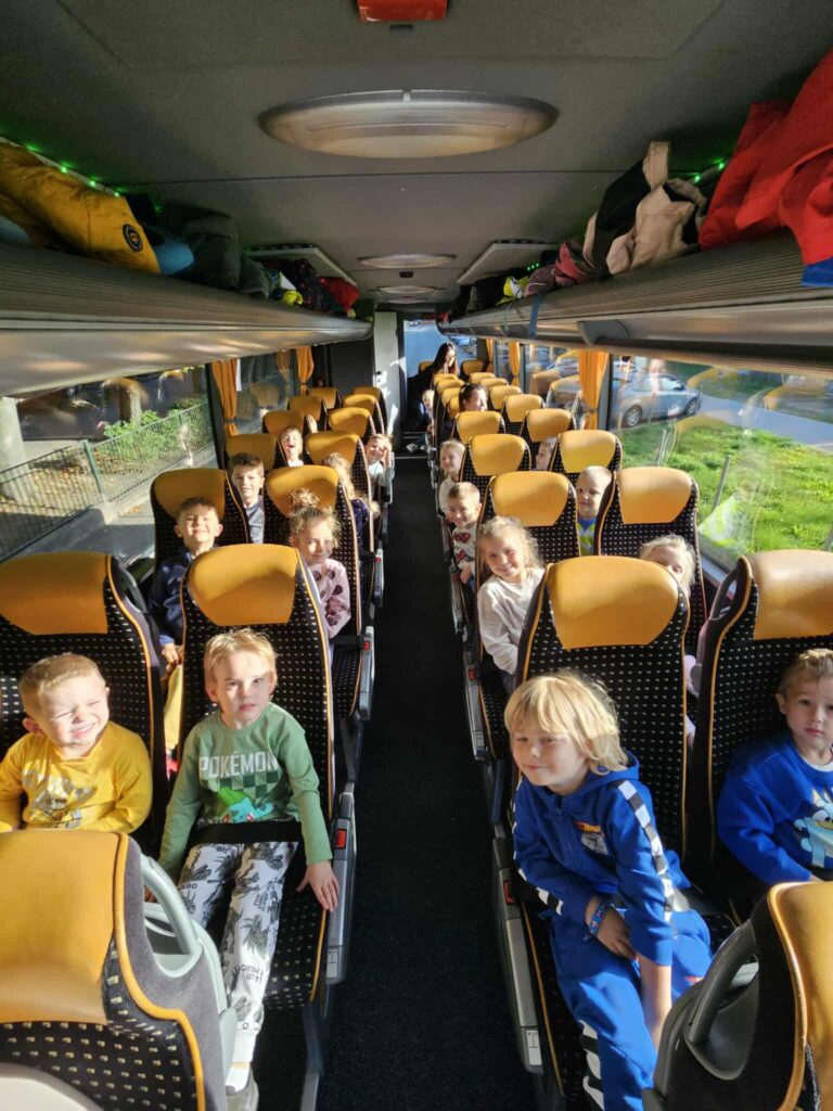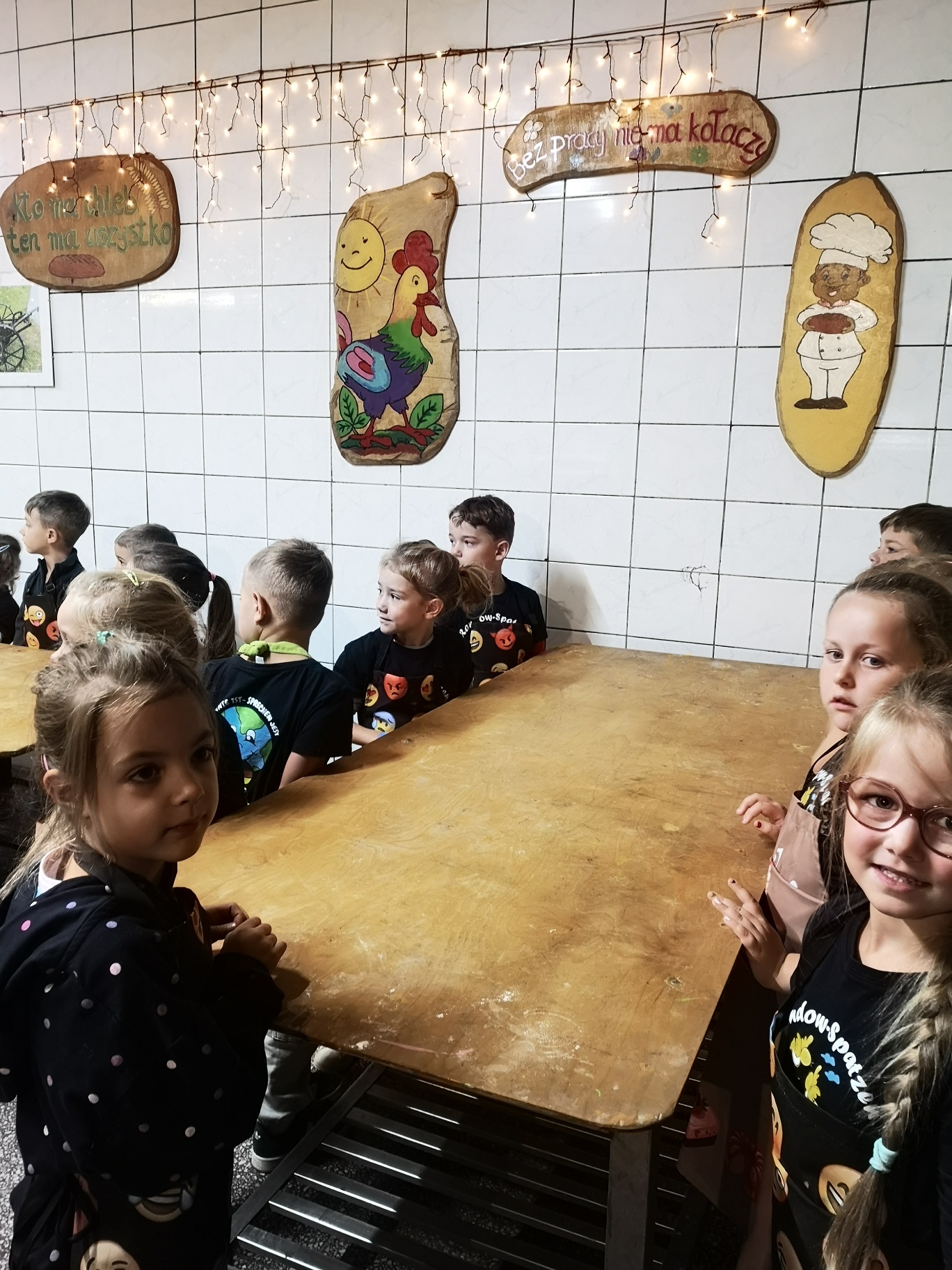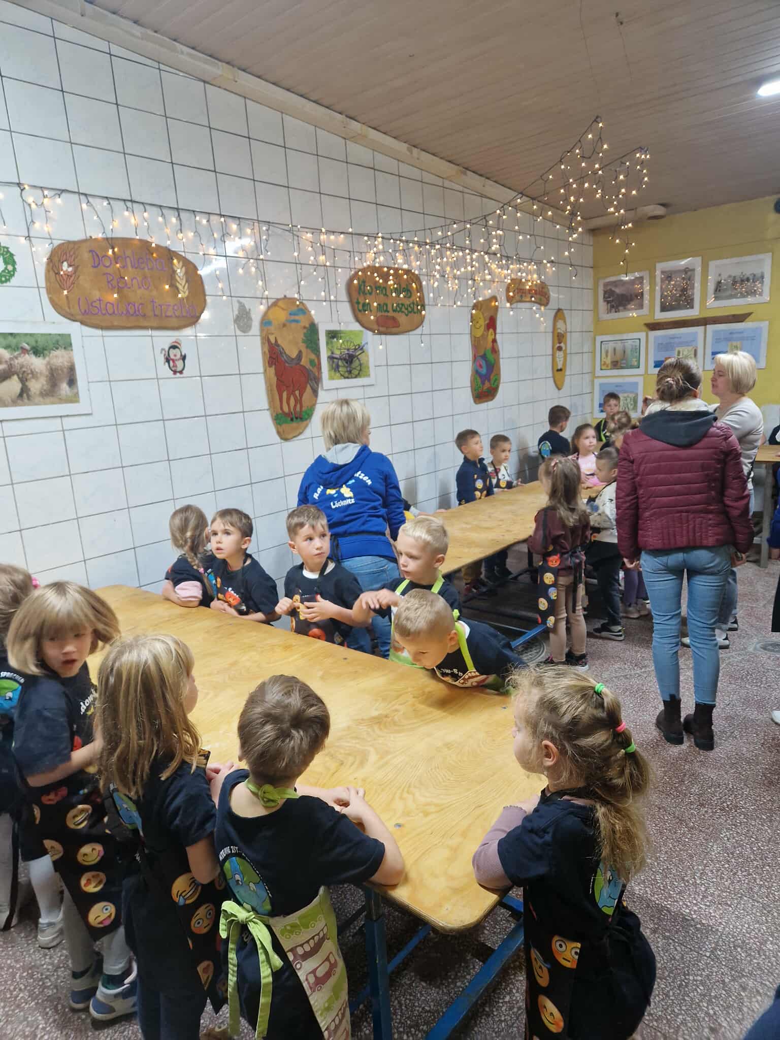 Dzieci bawiły się wyśmienicie wyrabiając z ciasta podpłomyki, bułki, chleb, pierniki. W przerwie zajęć odbyła się przejażdżka elektrycznym busem po okolicy.
